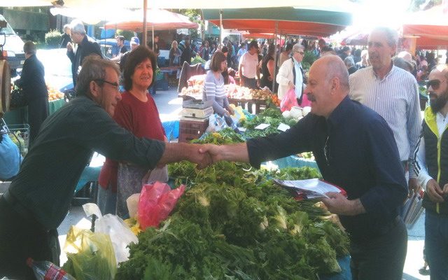 Περιοδεία του υποψήφιου δημάρχου Τρικκαίων Γιώργου Καΐκη στη Λαϊκή Αγορά του Σιδηροδρομικού Σταθμού