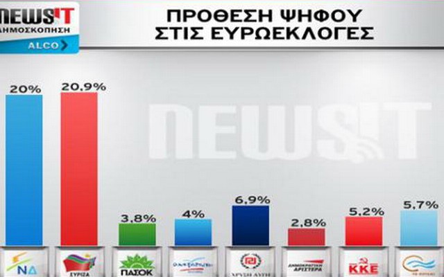 Τα αντίστοιχα ποσοστά πρόθεσης ψήφου στις ευρωεκλογές με αναγωγή στα έγκυρα:
