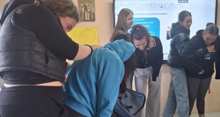 Η κ. Ε. Γιοβανοπούλου έδειξε στους μαθητές/τριες μας, με τρόπο βιωματικό και άμεσο, πώς να αντιδρούν σε επείγουσες καταστάσεις: από την αντιμετώπιση μιας λιποθυμίας και πνιγμού μέχρι τη χρήση απινιδωτή και την παροχή ΚΑΡΠΑ.