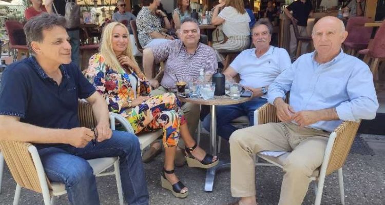 Όπως αποτύπωσε ο φακός του trikalaIN.gr, ντυμένη με ένα εντυπωσιακό πολύχρωμο σύνολο, απόλαυσε το καφεδάκι της με αντροπαρέα που αποτελούσαν ο Περιφερειακός Σύμβουλος Χρήστος Γακόπουλος, ο Γραμματέας της ΔΕΕΠ Τρικάλων και Δημοτικός Σύμβουλος Πύλης Γιάννης Κουτσονάσιος και τα παλιότερα «γαλάζια» στελέχη Γιώργος Ντάφης και Γιώργος Καλαντζής, σχολιάζοντας όλες φυσικά τις πολιτικές εξελίξεις σε τοπικό και εθνικό επίπεδο.