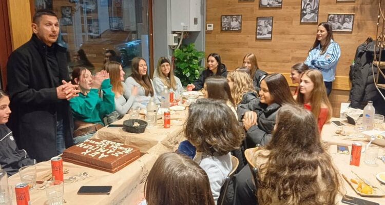 Τη Δευτέρα το βράδυ, η ομάδα της ΑΕΚ Σαραγίων – τμήμα κοριτσιών, έκοψε τη πρωτοχρονιάτικη πίτα της. “Της κακομοίρας” έγινε από τα γέλια και πειράγματα των κοριτσιών που απέδειξαν, για μια ακόμη φορά, το υγιές κλίμα που βγάζει η ομάδα και εξωαγωνιστικά. Το ξέρουν και το αποδεικνύουν ότι “οι παρέες γράφουν ιστορία” και ας μην είναι καμιά φορά τα αποτελέσματα θετικά. Η οικογένεια των Σαραγίων δίνει την υπόσχεση ότι θα συνεχίσει με πάθος και …όπου βγάλει. Άλλωστε τι σημασία έχει, όταν οι παρέες πρωταγωνιστούν.