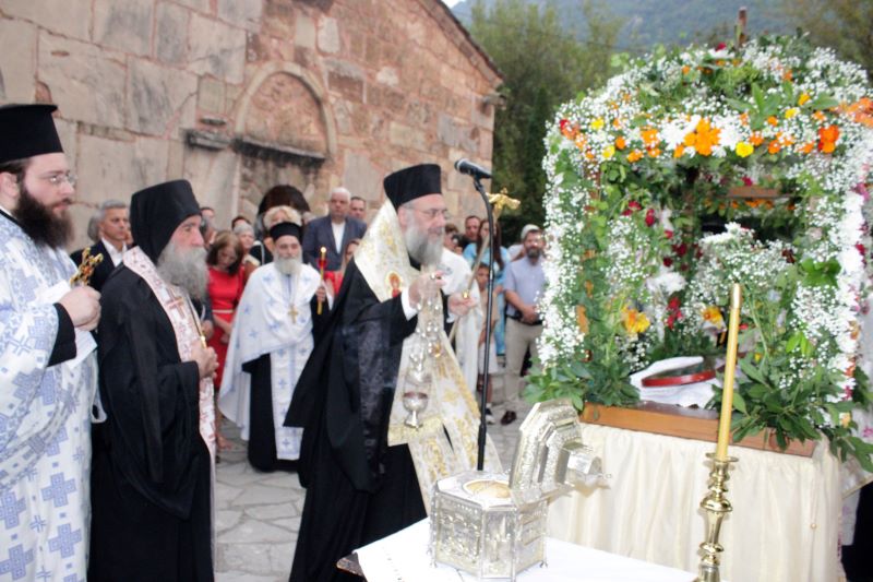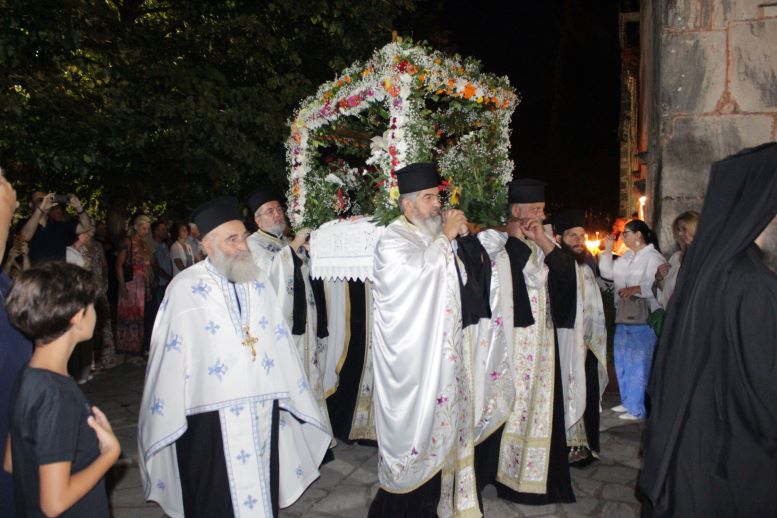 Με θρησκευτική ευλάβεια, κατάνυξη και εξέχουσα λαμπρότητα τιμήθηκε η Απόδοσις της Κοιμήσεως της Θεοτόκου, την Τρίτη 22 Αυγούστου, παραμονή της εορτής, με την τέλεση του Μέγα Αρχιερατικού Εσπερινού στον Ιερό Ναό της Πόρτας Παναγιάς, χοροστατούντος του Σεβασμιοτάτου Μητροπολίτη Τρίκκης, Γαρδικίου και Πύλης κ. κ. Χρυσοστόμου, συνεπικουρούμενου από τον Καθηγούμενο της Ι. Μ. Αγίου Βησσαρίωνος Γέροντα Βησσαρίωνα Δουσικιώτη και πλειάδας Ιερέων, παρουσία του Δημάρχου Πύλης Κωνσταντίνου Μαράβα και πλήθους πιστών.