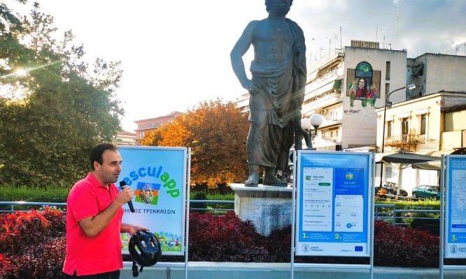 Μια νέα εφαρμογή για κινητά τηλέφωνα που προωθεί την υγεία και ευεξία με περισσότερο περπάτημα και ποδηλασία, είναι πλέον διαθέσιμη για τους τρικαλινούς και τις τρικαλινές. Πρόκειται για την εφαρμογή (appilcation) με το όνομα Aesculapp, που παραπέμπει ακριβώς στο όνομα του τρικαλινού γιατρού Ασκληπιού. Το απόγευμα της τρίτης 20 Σεπτεμβρίου 2022, ακριβώς κάτω από το άγαλμα του Ασκληπιού στην ομώνυμη πεζογέφυρα των Τρικάλων, ο Δήμαρχος Τρικκαίων Δημήτρης Παπαστεργίου παρουσίασε την εφαρμογή. Και, όπως τόνισε, πρόκειται για “συνένωση δυνάμεων για καλό σκοπό, για την υγεία μας”. Εξάλλου, σημείωσε, “αν δεν μετρήσεις κάτι, δεν μπορείς να το βελτιώσεις” και στο πλαίσιο αυτό, μετρώνται τα χιλιόμετρα που θα κάνουν οι τρικαλινοί/ες με το ποδήλατο ή πεζή. Επιπλέον, κάθε πολίτης που θα “κατεβάζει” και θα χρησιμοποιεί την εφαρμογή, όχι μόνο θα βλέπει και θα ξέρει την καθημερινή του πρόοδο (σε τρέξιμο, απλό περπάτημα και ποδηλασία), αλλά και θα διαπιστώνει πόσες θερμίδες ξόδεψε. Μάλιστα, όπως επεσήμανε ο κ. Παπαστεργίου, στόχος είναι “του χρόνου τέτοια ημέρα, να έχουμε καταγράψει 80.150 χλμ., δηλαδή δύο φορές τον γύρο της γης!”.