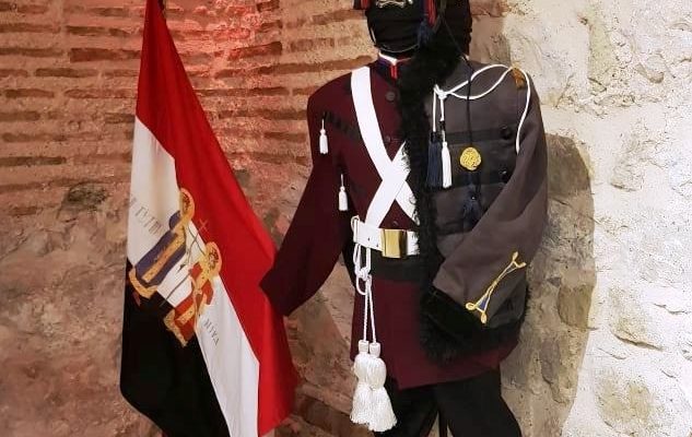 - Ακριβές αντίγραφο Σημαιοφόρου του Ιερού Λόχου με στολή Ρώσου Ιππέα Ουσσάρου, με τα διακριτικά του Ιερού Λόχου στο Shako (ένα είδος πηλικίου).