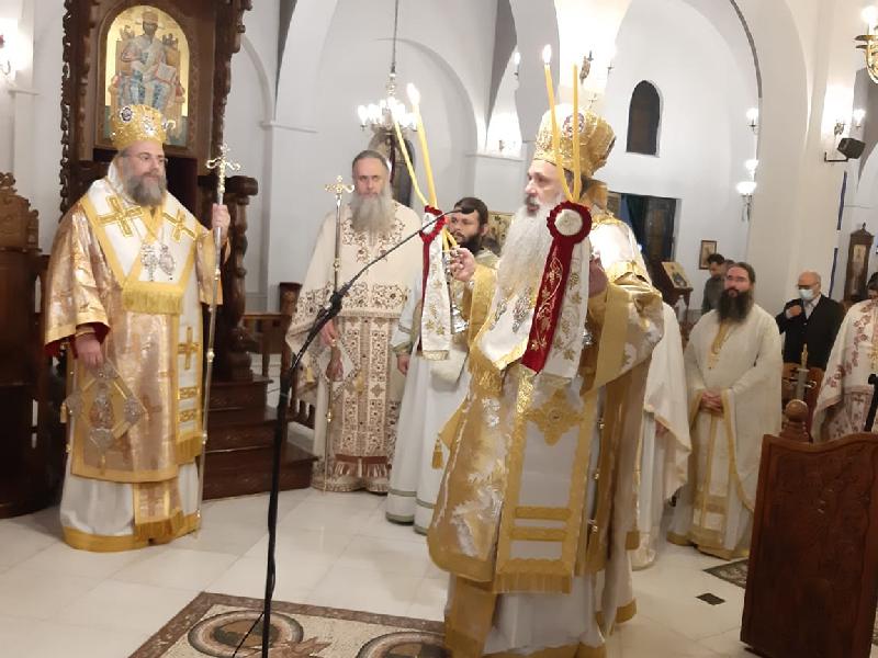 Την κυριώνυμο ημέρα της εορτής, Τρίτη 9 Νοεμβρίου 2021, ο Σεβασμιώτατος Μητροπολίτης Σταγών και Μετεώρων κ. Θεόκλητος Χοροστάτησε κατά τη διάρκεια του Όρθρου και προεξήρχε της Θείας Λειτουργίας συλλειτουργούντος του Σεβασμιωτάτου Μητροπολίτου Τρίκκης, Γαρδικίου και Πύλης κ. Χρυσοστόμου.