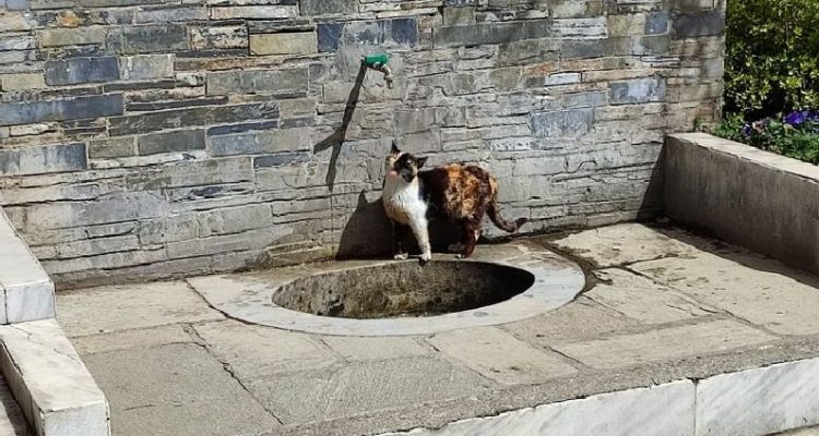 Η γατούλα αδιαφόρησε πλήρως για τα αδιάκριτα βλέμματα των περαστικών που την κοιτούσαν, αφού ήταν αφοσιωμένη στο πώς να…ξεγελάσει την δίψα της.