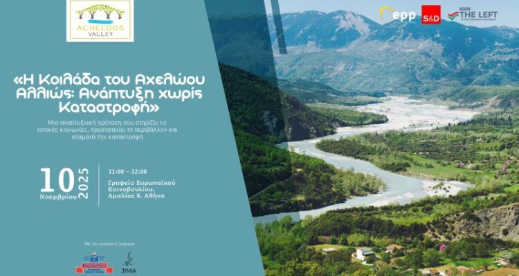 Μια νέα προοπτική για την ανάπτυξη της Κοιλάδας του Αχελώου αναδεικνύεται τη Δευτέρα 10 Νοεμβρίου 2025, στις 11:00, στο Γραφείο του Ευρωπαϊκού Κοινοβουλίου στην Ελλάδα (Λεωφ. Αμαλίας 8, Σύνταγμα), μέσα από την εκδήλωση με τίτλο: «Η Κοιλάδα του Αχελώου Αλλιώς: Ανάπτυξη χωρίς καταστροφή.» Μια πρωτοβουλία συνεργασίας Πολιτών, Θεσμών και Ευρώπης για το μέλλον της Ορεινής Υπαίθρου. Μια αναπτυξιακή πρόταση που στηρίζει τις τοπικές κοινωνίες, προστατεύει το περιβάλλον και σταματά την καταστροφή.