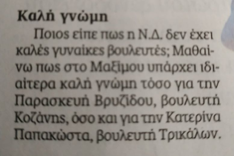 Ακόμη και Αθηναίοι δημοσιογράφοι εκθειάζουν την Κατερίνα Παπακώστα και τις θετικές γνώμες που έχουν γι΄αυτή, οι ιθύνοντες του Μαξίμου, όπως στο πρόσφατο μονόστηλο δημοσίευμα της «Καθημερινής».