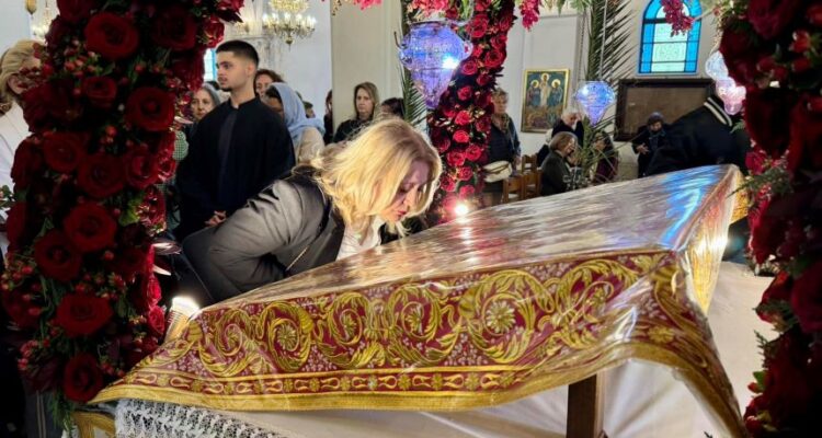 Μέσα σε κλίμα κατάνυξης και προσευχής, η Χρύσα Ντιντή προσήλθε σεμνά και ταπεινά και ασπάστηκε τον Επιτάφιο του Ιερού Ναού.