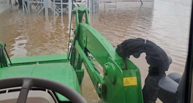 Μέχρι τις 3 τα ξημερώματα της Πέμπτης είχαμε τα ζώα σε στεγνό σημείο του στάβλου. Ο Θάνος μπάζωνε τις πόρτες με το τρακτέρ.