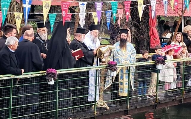 Με την δέουσα θρησκευτική κατάνυξη ο Σεβασμιότατος Μητροπολίτης Τρίκκης, Γαρδικίου και Πύλης κ. Χρυσόστομος, μετέβη το μεσημέρι της γιορτής των Θεοφανείων στη λίμνη Γκιτζή στο Μικρό Κεφαλόβρυσο, όπου τέλεσε τον καθαγιασμό τον Υδάτων με τη ρίψη του Τιμίου Σταυρού.