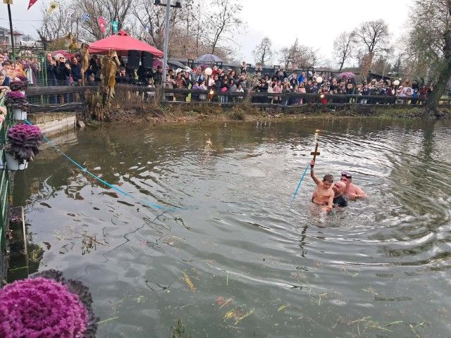 Την τελετή παρακολούθησε πλήθος πιστών, ενώ δεν έλειψαν και κάποιοι τολμηροί που βούτηξαν στα νερά της λίμνης για να ανασύρουν τον Σταυρό.