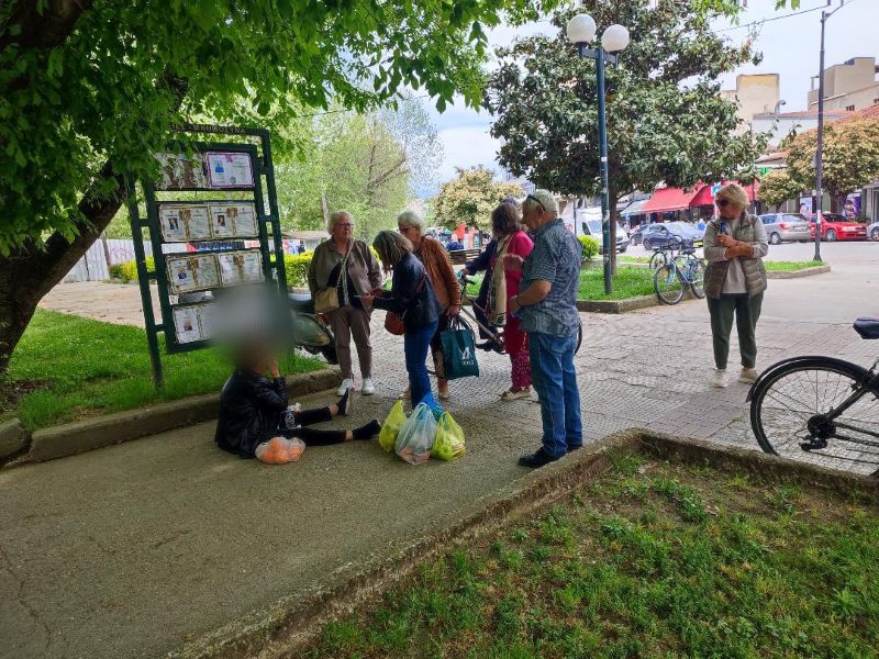 Σήμερα το μεσημέρι, όπως κατέγραψε το trikalaIN.gr, μια ηλικιωμένη γυναίκα 75 περίπου ετών, ενώ βάδιζε στην πλατεία Εθνικής Αντίστασης (Κιτριλάκη) της πόλης κουβαλώντας σακούλες με ψώνια από την λαϊκή αγορά, παραπάτησε και έπεσε στο έδαφος με αποτέλεσμα να τραυματιστεί ελαφρά στο πρόσωπο.