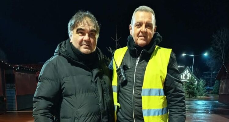 To trikalaIN.gr εντόπισε στο χώρο δύο υπαλλήλους Security, τον Γιώργο Ευσταθίου και τον Κώστα Βουτσελά, που φυλάνε νύχτα μέρα εξοπλισμούς και μηχανήματα, μέχρι αυτά να φύγουν και να επιστρέψουν και πάλι του χρόνου στον ίδιο χώρο.