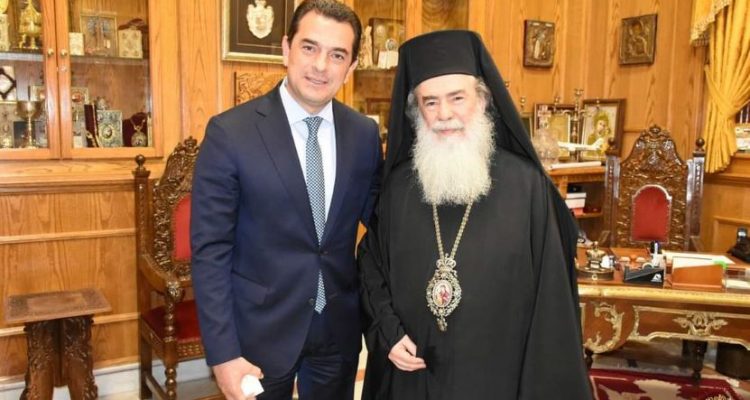 Τον Πατριάρχη Ιεροσολύμων Θεόφιλο επισκέφτηκε το απόγευμα της Δευτέρας ο Υπουργός Περιβάλλοντος και Ενέργειας κ. Κωνσταντίνος Σκρέκας ευρισκόμενος σε επίσκεψη μιας ημέρας στο Ισραήλ συνοδευόμενος από συνεργάτες του.