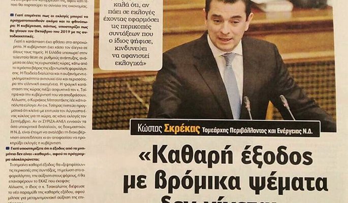 Συνέντευξη στην εφημερίδα Realnews στο δημοσιογράφο Γιώργο Σιαδήμα, παραχώρησε ο Βουλευτής Π.Ε. Τρικάλων της Ν.Δ., πρώην Υπουργός- τομεάρχης Περιβάλλοντος και Ενέργειας ΝΔ, κ. Κωνσταντίνος Σκρέκας.