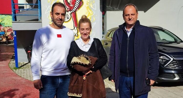 Η Περιφερειακή Σύμβουλος Μπέτυ Χατζηγάκη, ο Δημοτικός Σύμβουλος Πύλης Βαγγέλης Κουτής και ο αστυνομικός Άρης Μπουκουβάλας έφτασαν μαζί στο Πνευματικό Κέντρο και φυσικά πόζαραν χαρούμενοι στο φακό του trikalaIN.gr.