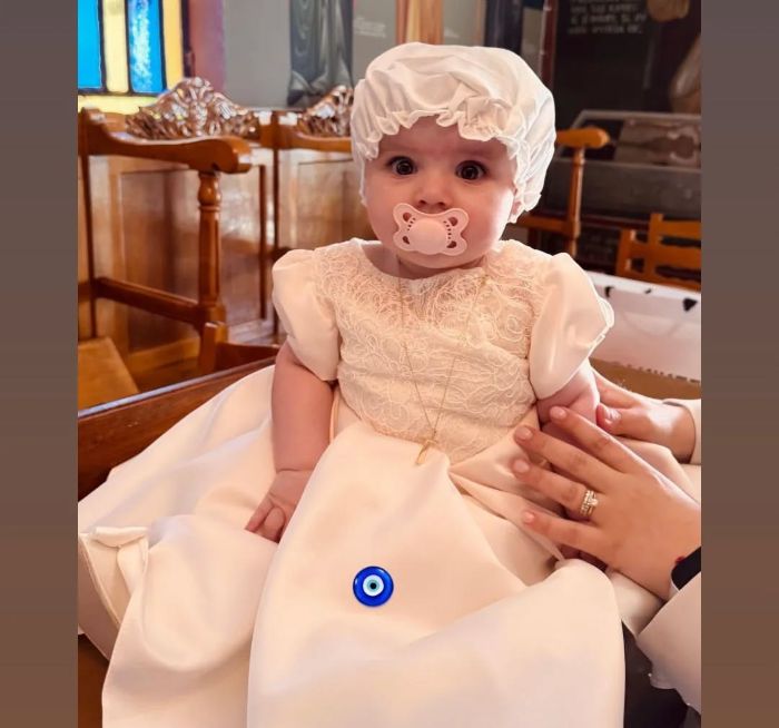 Την κόρη τους βάφτισαν το μεσημέρι της Κυριακής παρουσία συγγενών και φίλων, σε μια λαμπερή τελετή στον Άγιο Στυλιανό, παρεκκλήσι του Ιερού Ναού Αγίου Αθανασίου Αγίας Μονής, ο Δημήτρης Παδιός και η Ελπίδα Γεωργάκη.