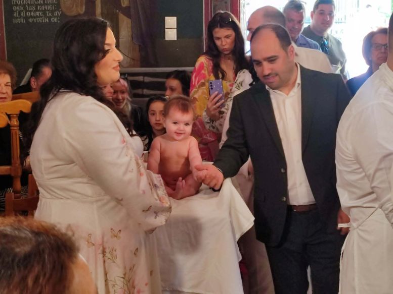 Οι νονοί της χαριτωμένης μικρής Γιάννης Μυλωνάς και Μαρία Κυριακού, της χάρισαν το όνομα Ιωάννα!