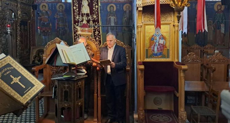 Στη φωτογραφία από τον Κυριακάτικο εκκλησιασμό του στον Κλεινοβό.