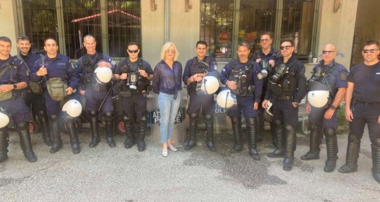 Ούτε με ένα, ούτε με δύο, αλλά με μια ολόκληρη διμοιρία των ΜΑΤ, φωτογραφήθηκε η Αντιδήμαρχος του Α’ Τομέα του Δήμου Τρικκαίων Ζωή Παπαναστασίου.