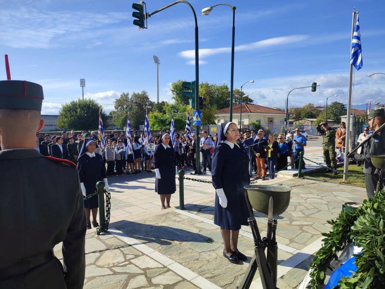 Όπως κατέγραψε το trikalaIN.gr, πραγματοποιήθηκε κατάθεση στεφάνων από τον Αντιπεριφερειάρχη Χρήστο Γακόπουλο, τον Αντιδήμαρχο Μιχάλη Λάππα, τους Διευθυντές της Πρωτοβάθμιας και Δευτεροβάθμιας εκπαίδευσης Τρικάλων Χρήστο Τρικάλη και Αλέξανδρο Καπανιάρη, από εκπροσώπους του ΕΕΣ Τρικάλων, μαθητές και προσκόπους, μέσα σε κλίμα σεβασμού, εθνικής ανάτασης και υπερηφάνειας για τους διαχρονικούς αγώνες της πατρίδας μας.