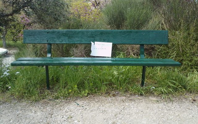 Μπορεί ο βαφέας να μερίμνησε και να έβαλε χαρτάκια ώστε να μην τη… βάψει κάποιος απρόσεκτος διερχόμενος, όμως κανείς δεν μπορεί να προβλέψει με… βεβαιότητα εάν το δεξί ή το αριστερό παγκάκι -ή και τα δυο αντάμα- θα βρίσκονται την προσεχή εβδομάδα στη… θέση τους!