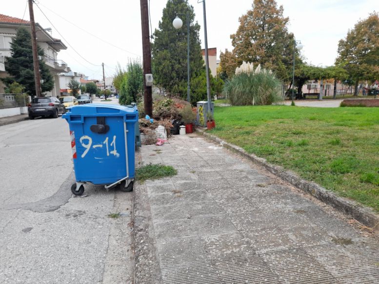 Δύο καί περισσότερες βδομάδες είναι τα κλαδιά καί τα σκουπίδια στο πεζοδρόμιο της οδού Σύρου, στό ύψος πού τελειώνει η οδός Λευκάδας, κοντά στο Γενικό Νοσοκομείο Τρικάλων.
