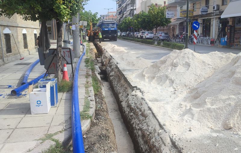 Οι εργασίες εκτελούνται για την αντικατάσταση του υπάρχοντος δικτύου ύδρευσης με νέο και ως εκ τούτου ο δρόμος παραμένει κλειστός για τα αυτοκίνητα.