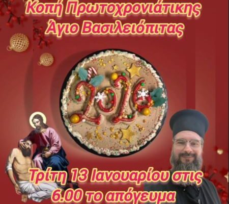Με τις ευχές του Σεβασμιωτάτου Μητροπολίτου Τρίκκης, Γαρδικίου και Πύλης την Τρίτη 13 Ιανουαρίου στις 6:00 το απόγευμα, η Χριστιανική Αδελφότητα ΕΛΕΗΜΩΝ ΣΑΜΑΡΕΙΤΗΣ Τρικάλων θα κόψει την καθιερωμένη Βασιλειόπιτα για την Έναρξη των Εσπερινών Ομιλιών στην αίθουσα της Χριστιανικής Αδελφότητας ΕΛΕΗΜΩΝ ΣΑΜΑΡΕΙΤΗΣ (Στουρνάρα 11).