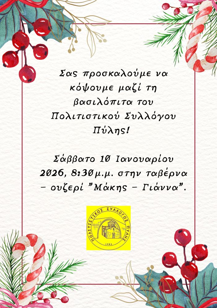 Κοπή βασιλόπιτας Πολιτιστικού Συλλόγου Πύλης 05/01/2026 Απόψεις Δημήτρης Παδιός Κοπή βασιλόπιτας Πολιτιστικού Συλλόγου Πύλης το Σάββατο 10 Ιανουαρίου 2026 στην ταβέρνα ουζερί ο Μάκης- Γιάννα Ειδήσεις σήμερα Ο Μητροπολίτης και το πορτοκαλί στρώμα για τον Σταυρό! by Antonis CookenΖωντανή η Μεσοχώρα!Eφυγε από τη ζωή ο Παναγιώτης Χαρχαντής Δείτε όλες τις τελευταίες Ειδήσεις από την Ελλάδα και τον Κόσμο, τη στιγμή που συμβαίνουν, στο trikalain.gr