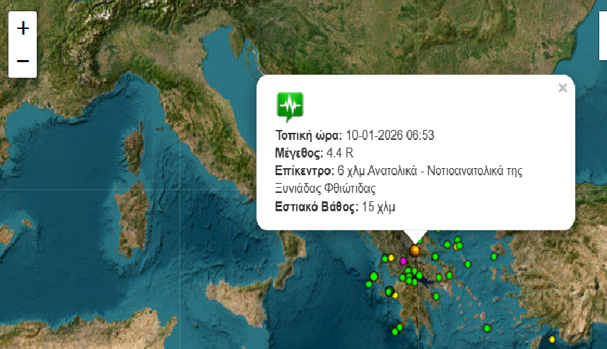 Σεισμός μεγέθους 4,4 βαθμών της κλίμακας Ρίχτερ σημειώθηκε στις 06.53 του Σαββάτου 10 Ιανουαρίου με το επίκεντρο να εντοπίζεται κοντά στην Ξυνιάδα Φθιώτιδας.
