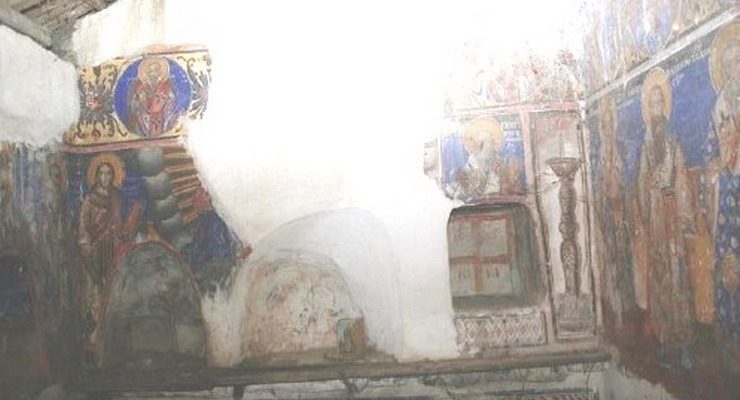 Ο ναός είναι κτισμένος σίγουρα πριν το 1761, συμπέρασμα στο οποίο καταλήγουμε από τη χρονολόγηση του τέμπλου σε επιγραφή του υπέρθυρου της Ωραίας Πύλης. Στο βόρειο τμήμα του ναού σώζεται το παρεκκλήσιο του Αγίου Ευθυμίου. H μεσοτοιχία με τον κυρίως ναό είναι αγιογραφημένη, ενώ ο βορεινός τοίχος είναι καλυμμένος με νεότερο σοβά. Πιθανόν, να είχε και εκεί κάποιες αγιογραφίες, οι οποίες δεν διασώθηκαν. Ενδέχεται να μην υπήρχε σε πρώτη φάση τοίχος και να υπήρχε ένα βορεινό χαγιάτι, που να κλείστηκε αργότερα και έτσι σχηματίστηκε το παρεκκλήσιο. Το ίδιο πρέπει να συνέβη με τον πρόναο, που μαζί με το παρεκκλήσιο αποτελούν έναν ενιαίο χώρο. Δυστυχώς, δεν σώζεται το τέμπλο του παρεκκλησιού. Το δάπεδο καλύπτεται από λίθινες πλάκες και σε ορισμένα σημεία από κεραμικές.