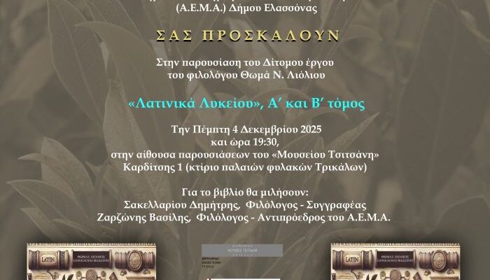 παρουσιάζουν το δίτομο βιβλίο του Φιλολόγου και Συγγραφέα Θωμά Ν. Λιόλιου