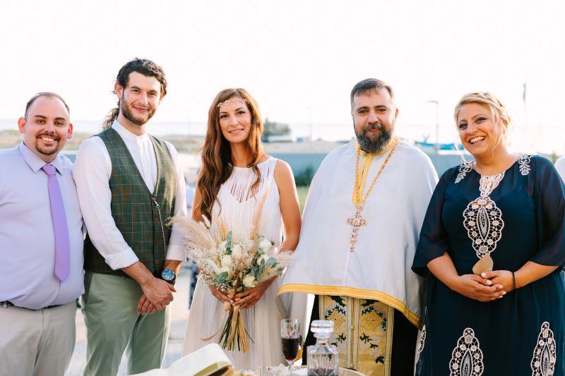 Το μυστήριο τέλεσε ο εφημέριος της Οιχαλίας π. Ευάγγελος Γιώτας και κουμπάροι του ταιριαστού ζευγαριού ήταν ο Δημήτρης Δήμου, φίλος του Κυριάκου, και η Ντιάνα, φίλη της Βούλας.