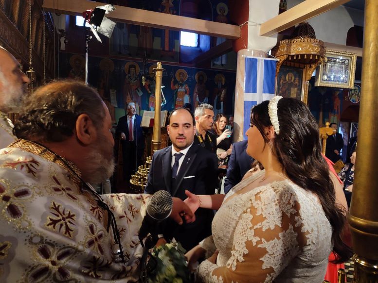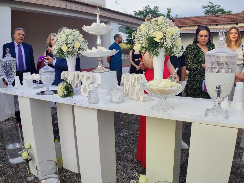 Μετά τα στέφανα ακολούθησε δεξίωση στο κέντρο «Memories Hall» στην Αγία Κυριακή, όπου το γλέντι συνεχίστηκε αμείωτο για τους νεόνυμφους και τους φίλους τους, μέχρι τις πρώτες πρωινές ώρες.