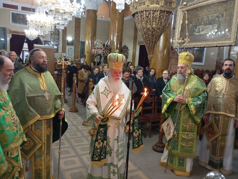 Όπως κατέγραψε το trikalaIN.gr, ο εορτασμός ξεκίνησε με την επίσημη δοξολογία με Αρχιερατική θεία λειτουργία στον Ιερό Ναό Παναγίας Επίσκεψης Τρικάλων, χοροστατούντος του Σεβασμιωτάτου Μητροπολίτου Τρίκκης, Γαρδικίου και Πύλης κ. Χρυσοστόμου.