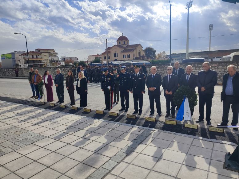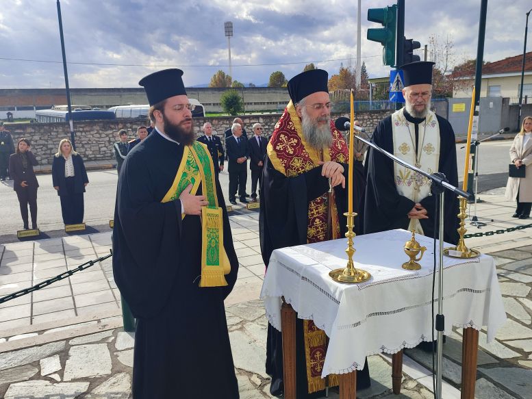 Στη συνέχεια τελέστηκε επιμνημόσυνη δέηση από τον Σεβασμιότατο Μητροπολίτη Τρίκκης, Γαρδικίου και Πύλης κ. Χρυσόστομο και κατάθεση στεφάνων στο Ηρώο Πεσόντων στη Σ.Μ.Υ από τους εκπροσώπους της πολιτικής και στρατιωτικής ηγεσίας του νομού, καθώς και εκπροσώπους φορέων.
