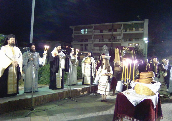 Στη συνέχεια ακολούθησε Λιτανεία της Ιεράς Εικόνος της Παναγίας «Επισκέψεως» με αρτοκλασία και θείο Κήρυγμα στην Πλατεία Αριστοτέλη Αντωνίου (Λαναρά)των Τρικάλων.