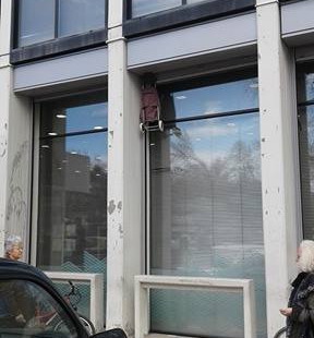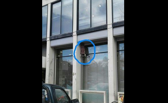 Εντύπωση προκάλεσε το σημερινό θέαμα έξω από το υποκατάστημα της Εθνικής Τράπεζας στην κεντρική πλατεία των Τρικάλων, όταν καροτσάκι που χρησιμοποιείται για την αγορά και μεταφορά προϊόντων από την λαϊκή, βρέθηκε σ’ αυτή την περίεργη θέση, να κρέμεται δηλαδή από την τζαμαρία της τράπεζας.