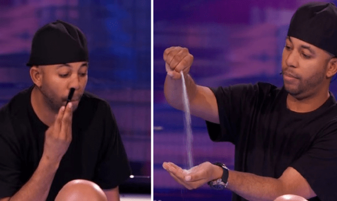 Νερό που εξαφανίζεται κι έρχεται ξανά από το πουθενά, το ίδιο κόλπο με αλάτι και στο τέλος ένα στυλό εξαφανίζεται από τη μύτη του και βγαίνει από το στόμα του.