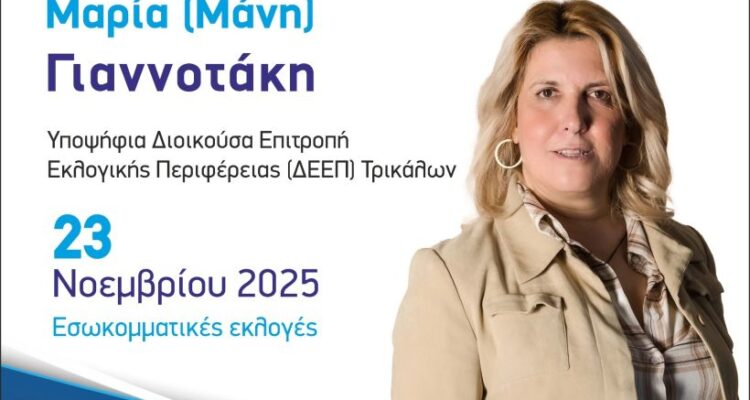 Υποψήφια για Πρόεδρος της Δ.Ε.Ε.Π. Νέας Δημοκρατίας Τρικάλων