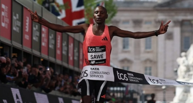 Ο Κενυάτης Σεμπάστιαν Σάουε έσπασε το φράγμα των δύο ωρών για πρώτη φορά στην ιστορία την Κυριακή, κερδίζοντας τον Μαραθώνιο του Λονδίνου.