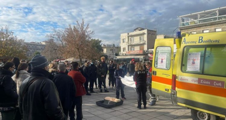 Με την υποστήριξη και ενεργό συμμετοχή των εργαζομένων στο ΕΚΑΒ, πραγματοποιήθηκε το πρωί της Δευτέρας στη κεντρική πλατεία Τρικάλων, επίδειξη ΚΑΡΠΑ, πρώτων βοηθειών και διάσωσης της ανθρώπινης ζωής, στο πλαίσιο της Πανελλήνιας Εβδομάδας πρόληψης και εκπαίδευσης BeSafe από 12-19 Δεκεμβρίου.