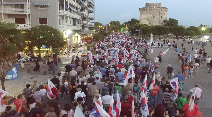 «Η ανάπτυξή τους τσακίζει τη ζωή μας, αγώνας κι αντεπίθεση η επιλογή μας». Το σύνθημα αυτό διαδήλωσαν χιλιάδες εργαζόμενοι, νέοι και συνταξιούχοι που πήραν μέρος στο συλλαλητήριο που οργάνωσε το ΠΑΜΕ στη Θεσσαλονίκη το Σάββατο το βράδυ. Ομοσπονδίες , Σωματεία & Επιτροπές Αγώνα έδωσαν το «παρών» στη συγκέντρωση στην πλατεία Αριστοτέλους και στην πορεία που ακολούθησε με τα πανό, τα συνθήματα και τις διεκδικήσεις τους.