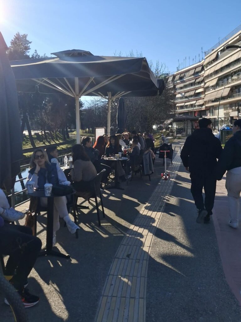Όπως κατέγραψε το trikalaIN.gr, τα καφέ της Ασκληπιού και αυτά πέριξ του Ληθαίου γεμίζουν με κόσμο, κυρίως νεαρόκοσμο, που απολαμβάνει τις ηλιόλουστες μέρες με καφεδάκι και καλή παρέα.