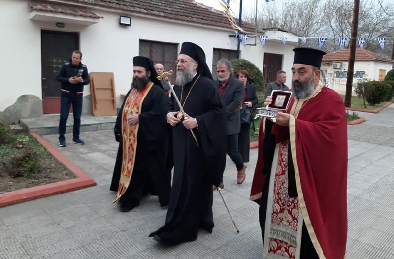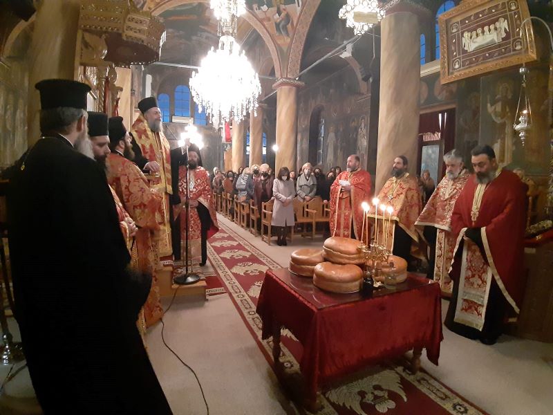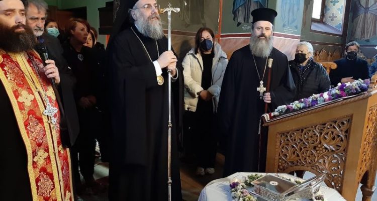 Τα ιερά λείψανα υποδέχθηκε στα προπύλαια του ναού, επικεφαλής του Ιερού κλήρου και του λαού, ο Σεβασμιώτατος Μητροπολίτης Τρίκκης, Γαρδικίου και Πύλης κ. Χρυσόστομος, ο οποίος στη συνέχεια χοροστάτησε και μίλησε στην Ακολουθία του Εσπερινού. Στο τέλος προσφέρθηκε σε όλους τους πιστούς η παραδοσιακή φιλοξενία.