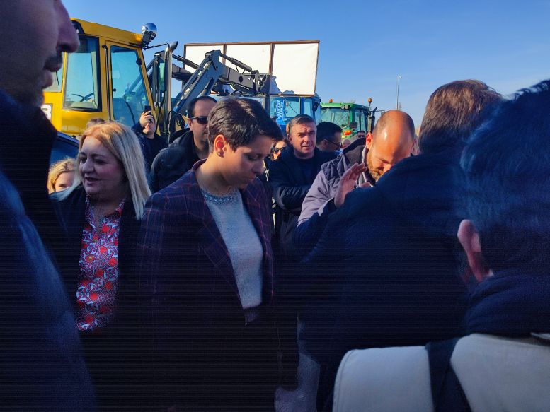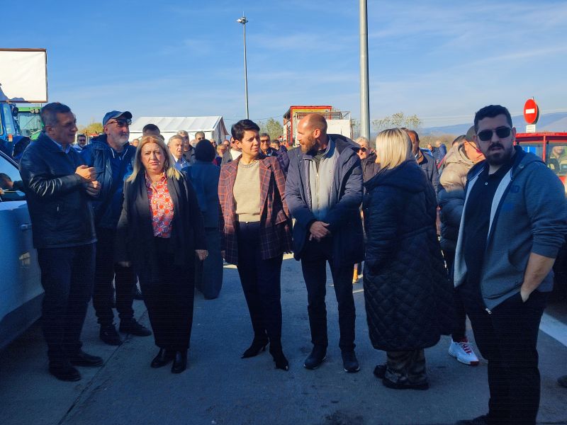 Όπως κατέγραψε το trikalaIN gr, ο Πρόεδρος του ΠΑΣΟΚ έγινε δεκτός με ενθουσιασμό από στελέχη και μέλη του κόμματος του, που ειχαν βρεθεί νωρίτερα στο μπλόκο για να τον υποδεχτούν, οπως επίσης και από αγρότες, κτηνοτρόφους και μελισσοκόμους που ήταν εκεί.