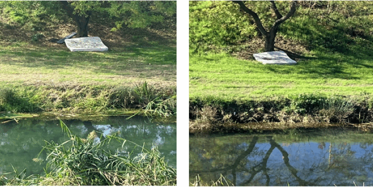 Και μια περί Ληθαίου ο λόγος, διάβασα επίσης για το έργο αντιπλημμυρικής προστασίας (;) και τον «καθαρισμό» της κοίτης του ποταμού. Τίποτα για τους τόνους διαφόρων υλικών (πλαστικών κυρίως) που βρίσκονται στις όχθες του. Με την πρώτη νεροποντή, όλα αυτά θα καταλήξουν στη θάλασσα επηρεάζοντας τη θερμική αγωγιμότητα και διαφάνεια του νερού, που με τη σειρά τους συμβάλουν στην υπερθέρμανσή του και στη δημιουργία ακραίων καιρικών φαινομένων. Είναι μάλιστα εντυπωσιακό ότι ένα στρώμα βρίσκεται επί μήνες πεταμένο στη δυτική όχθη, μόλις 800 μέτρα από την κεντρική γέφυρα, χωρίς κανείς να ενοχλείται. Οι φωτογραφίες αποτυπώνουν την κατάσταση πριν (αριστερά) και μετά (δεξιά) τον «καθαρισμό» της κοίτης του ποταμού.