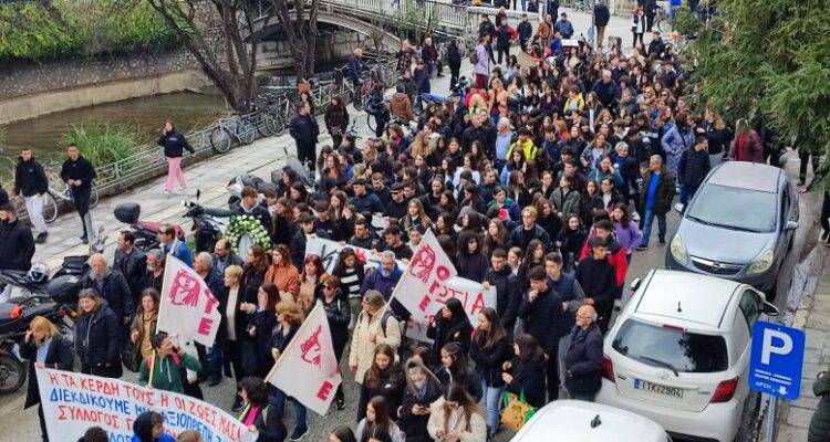 Λαοθάλασσα πλημμύρισε ολόκληρα τα Τρίκαλα, με αφορμή τη συμπλήρωση ενός έτους από τη σιδηροδρομική τραγωδία